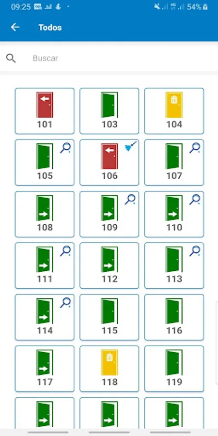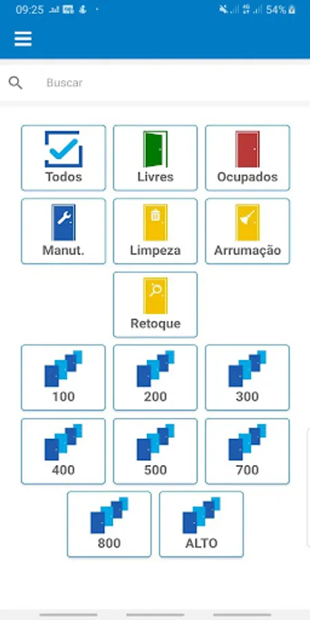 On the home screen there is a quick access with filters to find the rooms and the activities to be carried out. The application is integrated with your Desbravador management system, automatically bringing the status of each apartment. It is also possible to select the list of apartments per floor.
