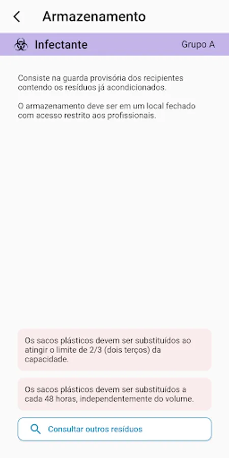 Waste can be found through a search or by categories and it is possible to learn about the different groups, how to dispose of it or even store it.