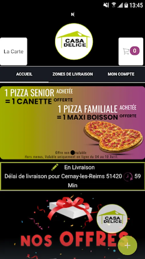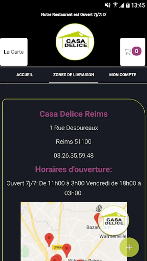 The Casa Delice Reims Android application allows you to order online or by phone via your application. You can consult our menu and choose your products.
