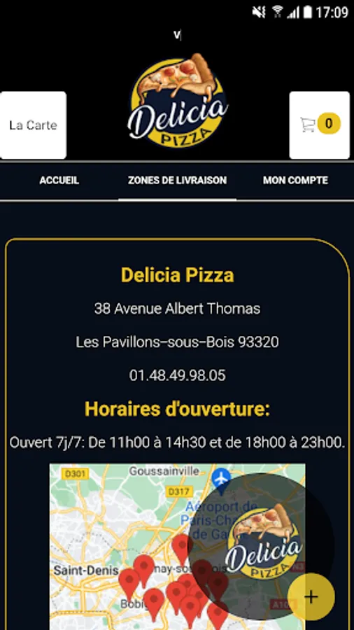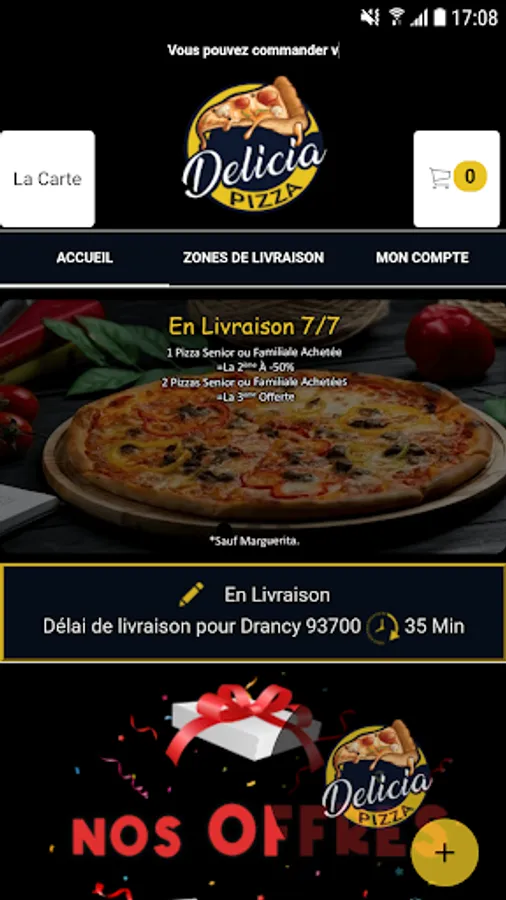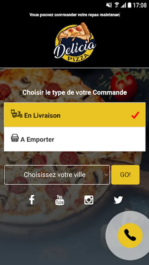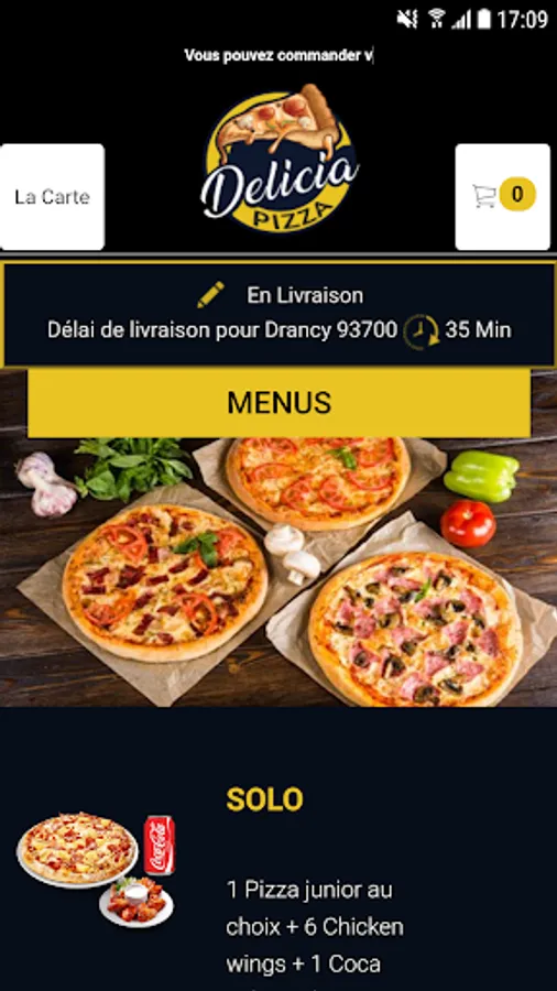The Delicia Pizza Android app lets you order online or over the phone through your app. You can consult our menu and choose your products.