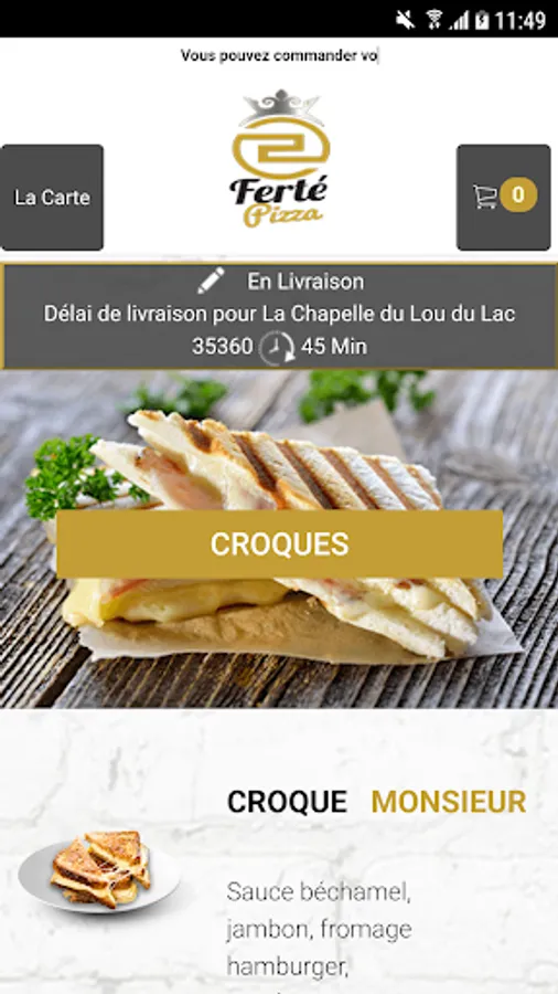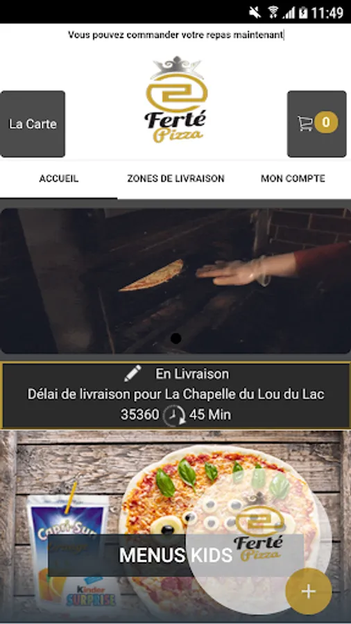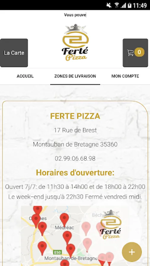 The FERTE PIZZA Android app allows you to order online or by phone through your app. You can consult our menu and choose your products.