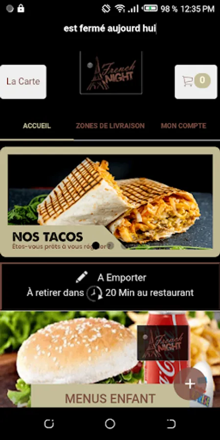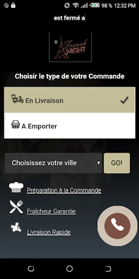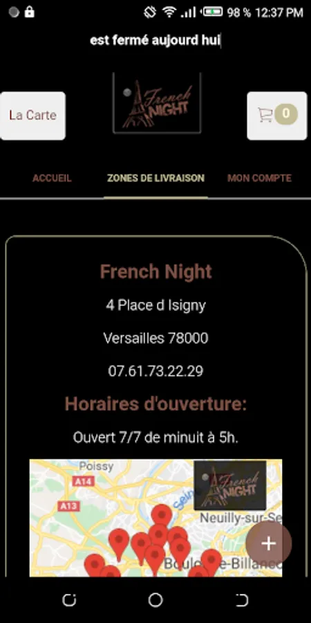 The French Night Android application allows you to order online or by phone via your application. You can consult our menu and choose your products.