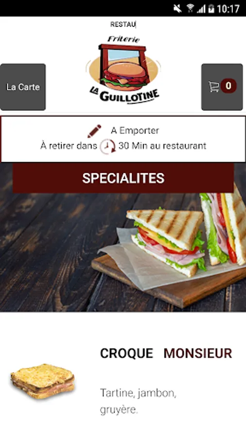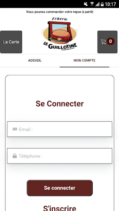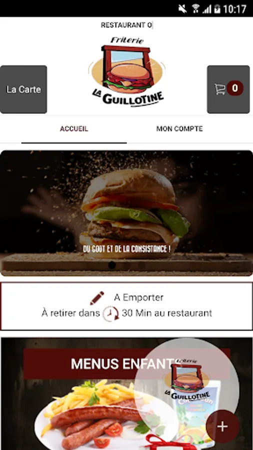 The Friterie la Guillotine Android application allows you to order online or by phone via your application. You can consult our menu and choose your products.