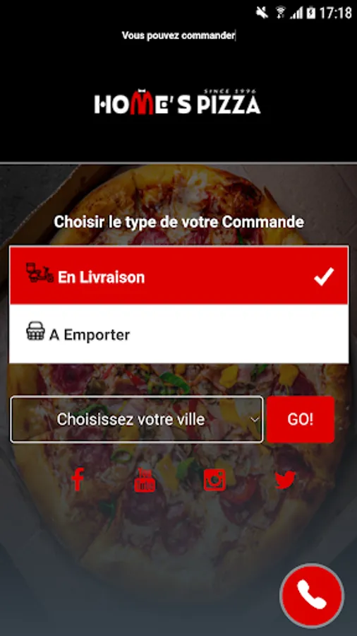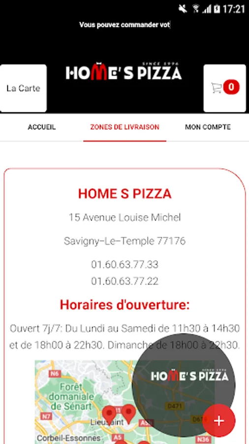 The HOME S PIZZA Android application allows you to order online or by phone via your application. You can consult our menu and choose your products.
