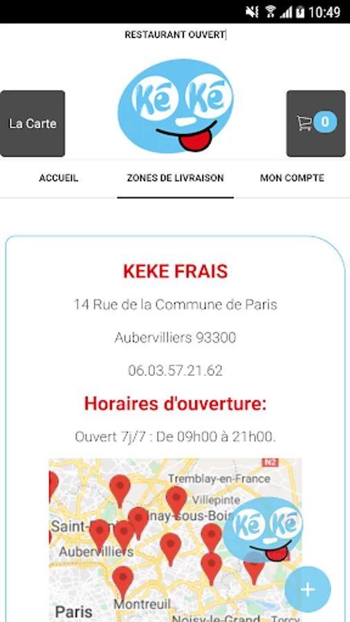The KEKE FRAIS Android application allows you to order online or by phone via your application. You can consult our menu and choose your products.