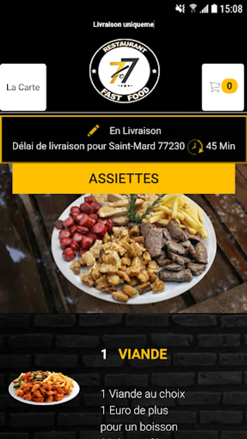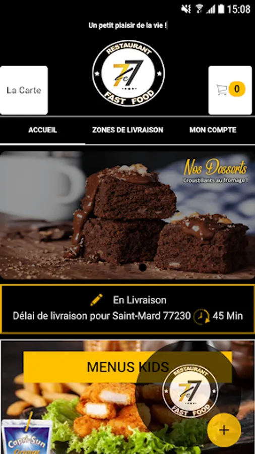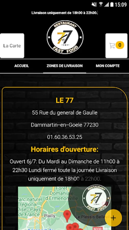 The LE 77 Android application allows you to order online or by phone via your application. You can consult our menu and choose your products.