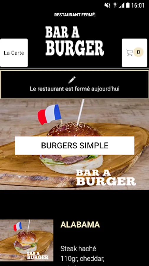 The Android application LE BAR A BURGER allows you to order online or by phone via your application. You can consult our menu and choose your products.