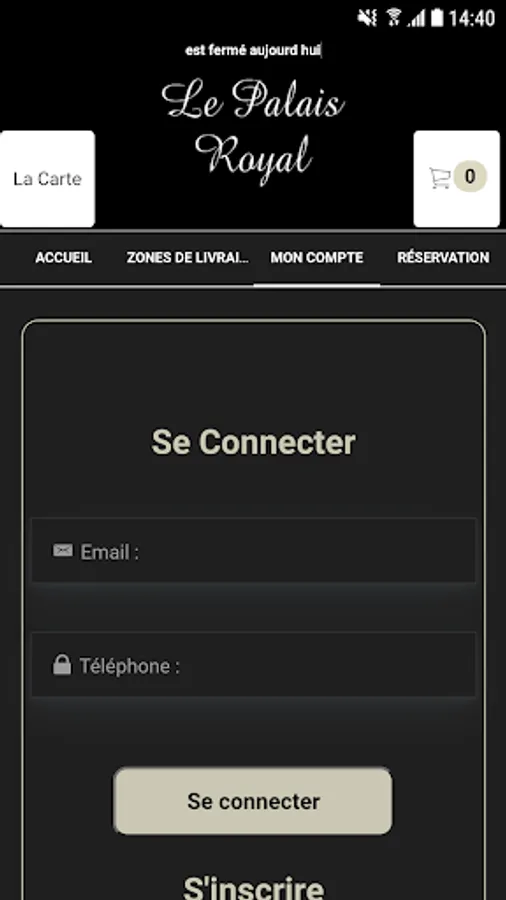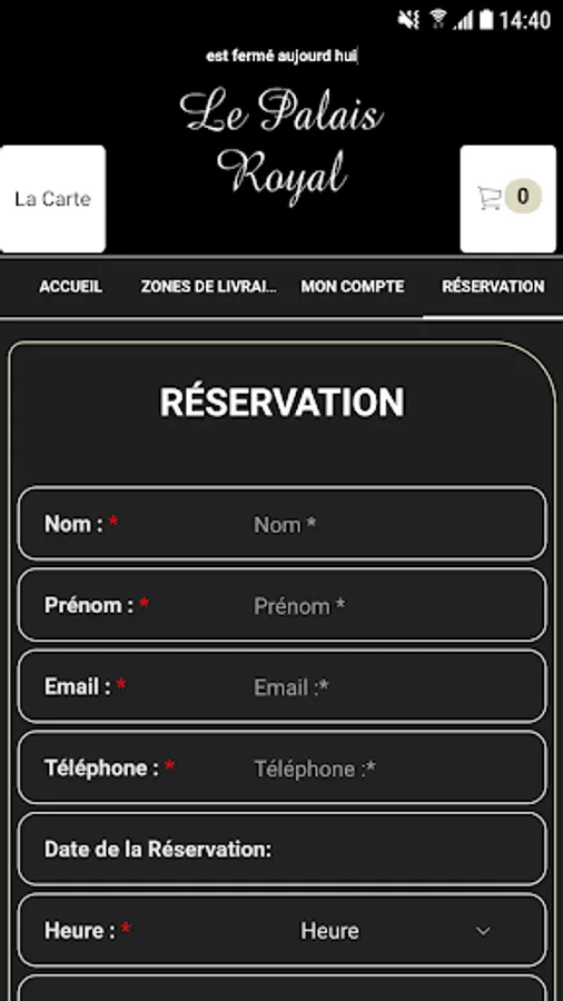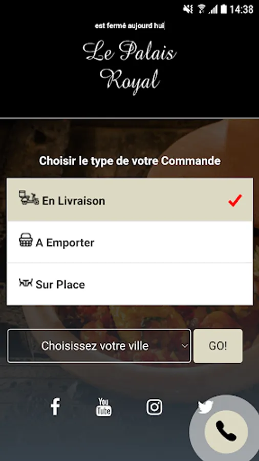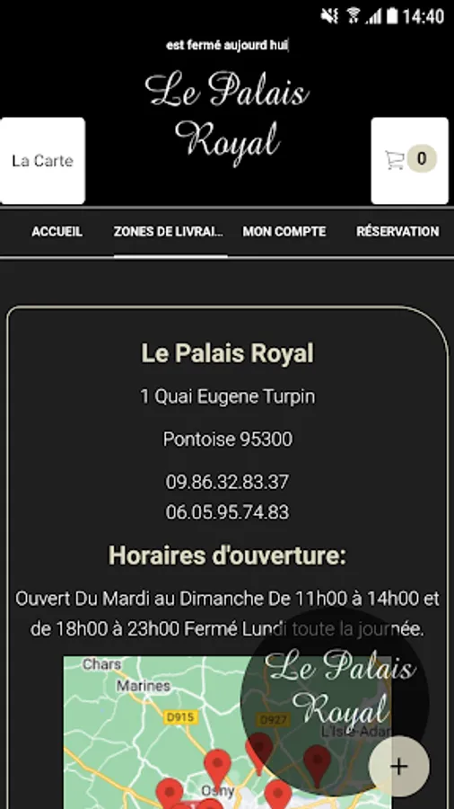 The Android application Le Palais Royal allows you to order online or by phone via your application. You can consult our menu and choose your products.