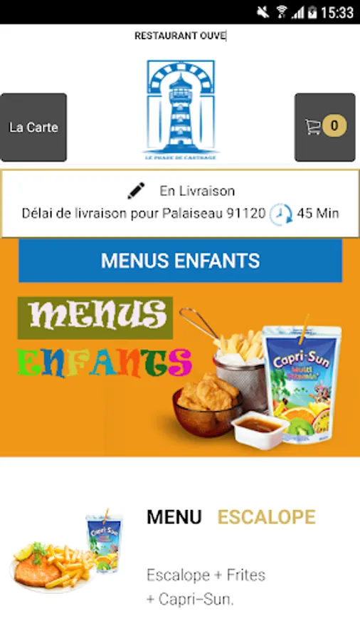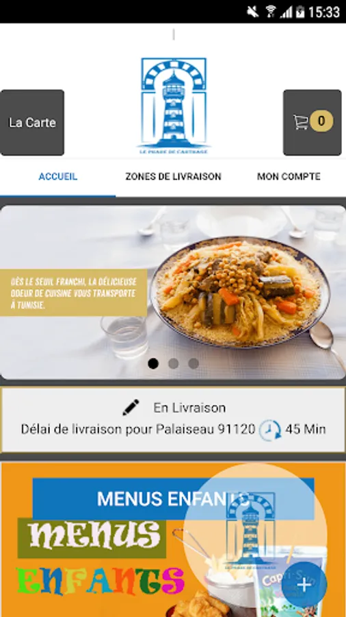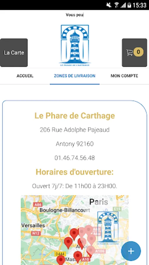 The Le Phare de Carthage Android application allows you to order online or by phone via your application. You can consult our menu and choose your products.