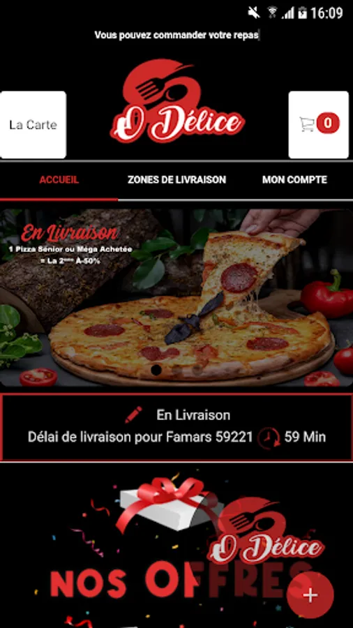 The O Delice Android application allows you to order online or by phone via your application. You can consult our menu and choose your products.