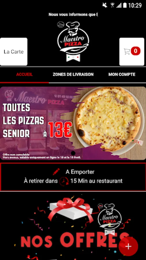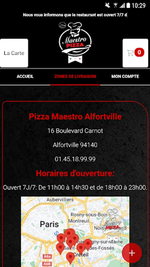The Pizza Maestro Alfortville Android application allows you to order online or by phone via your application. You can consult our menu and choose your products.