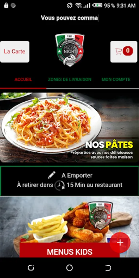 The Pizza Night 72 Android app allows you to order online or over the phone through your app. You can consult our menu and choose your products.