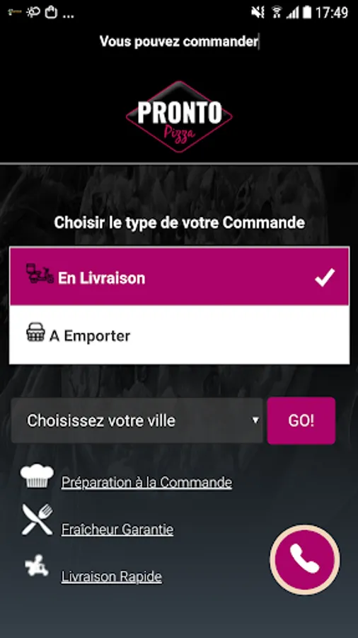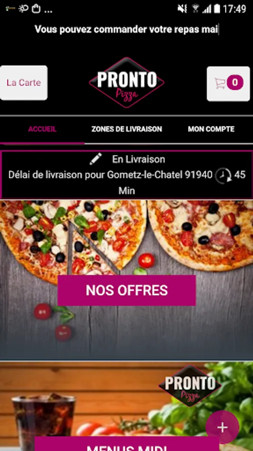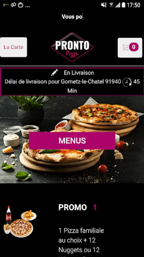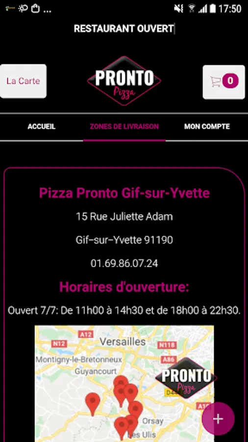 The Android Pizza Pronto app Gif-sur-Yvette allows you to order online or over the phone through your app. You can view our map and choose your products.