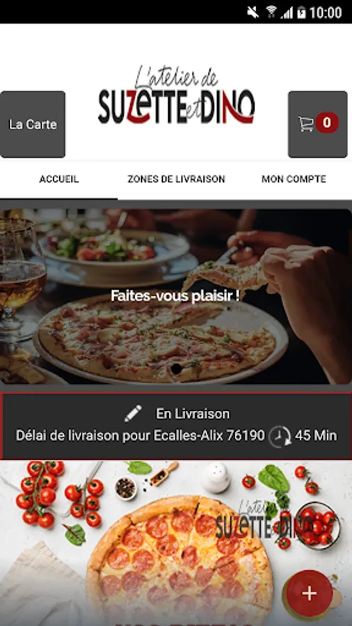 The Suzette and Dino Android app allows you to order online or by phone through your app. You can consult our menu and choose your products.