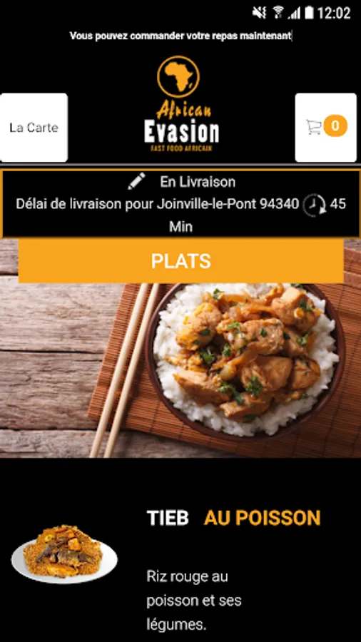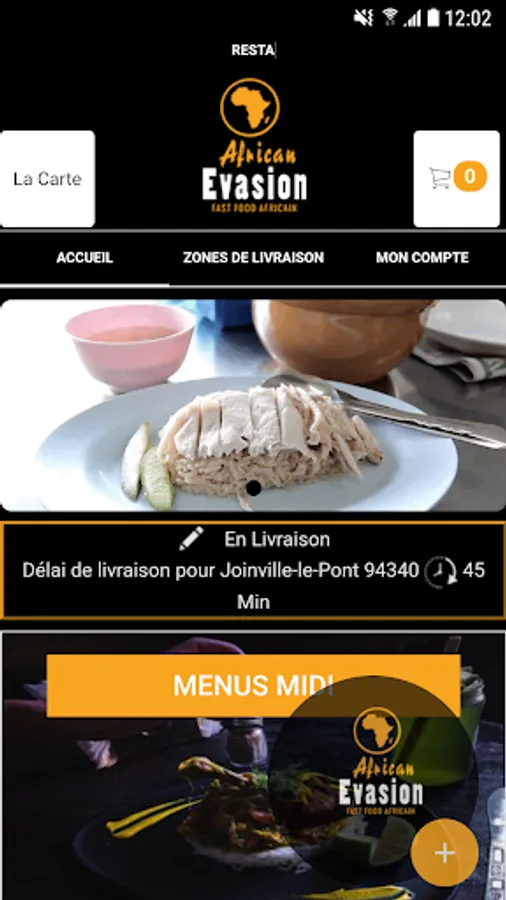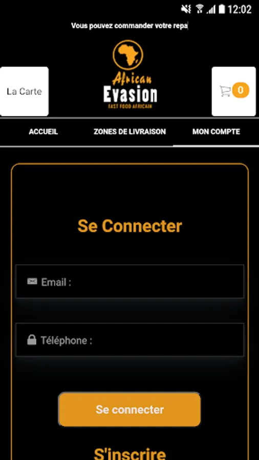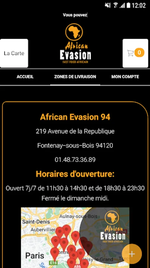 The African Evasion 94 android application allows you to order online or by phone via your application. You can consult our menu and choose your products.