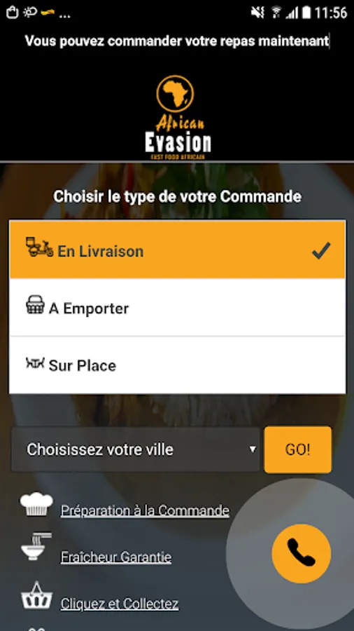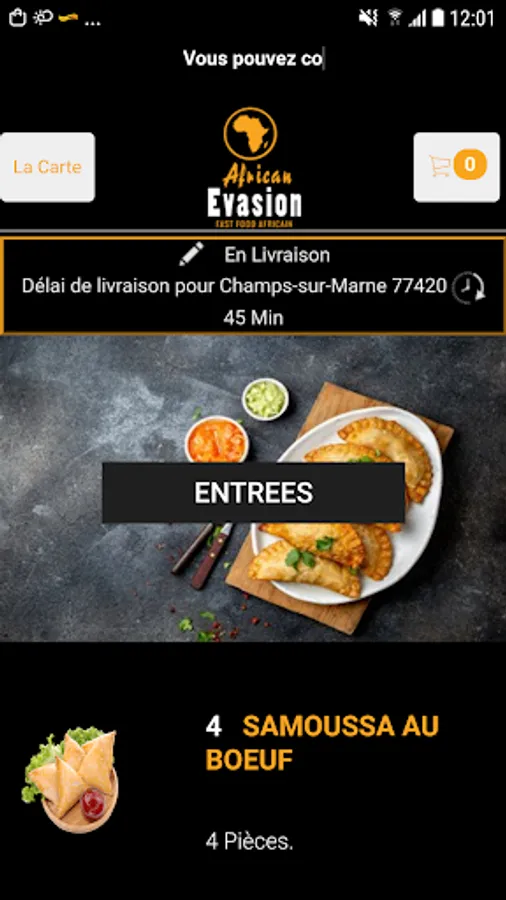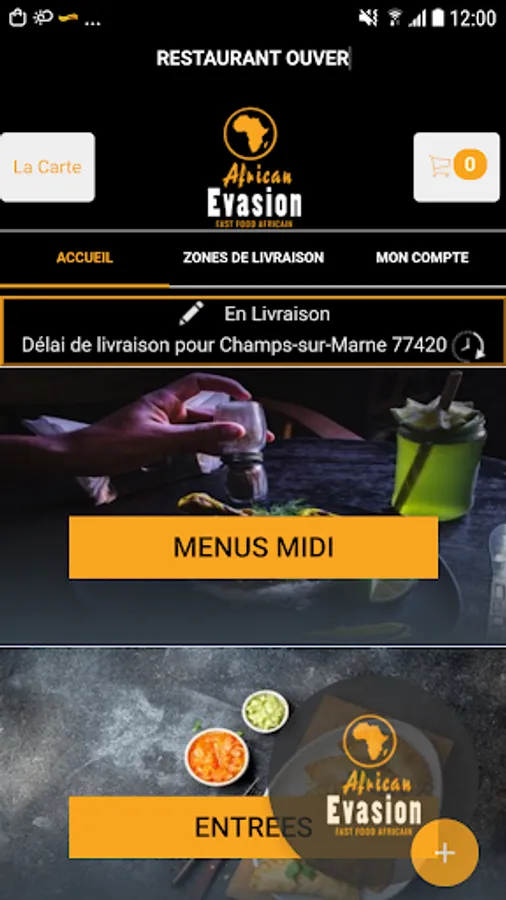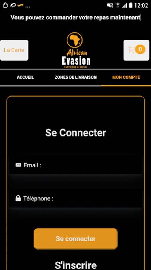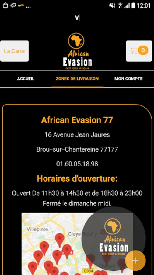 The Android application African Evasion 77 allows you to order online or by phone through your application. You can consult our menu and choose your products.