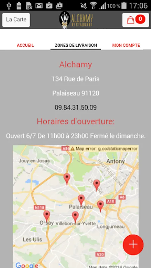 The Alchamy Android app lets you order online or by phone via your application. You can consult our map and choose your products.