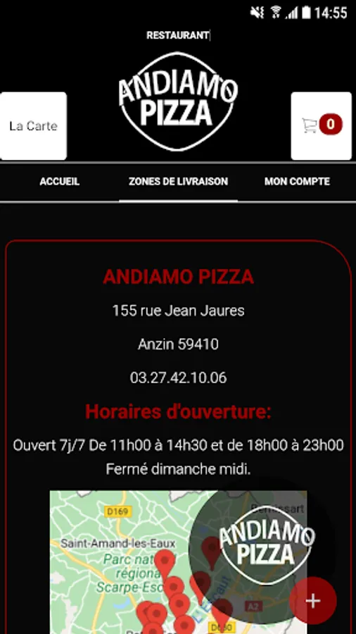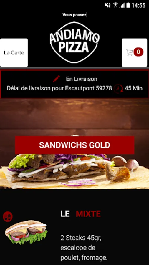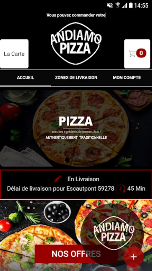 The ANDIAMO PIZZA Android application allows you to order online or by phone via your application. You can consult our menu and choose your products.