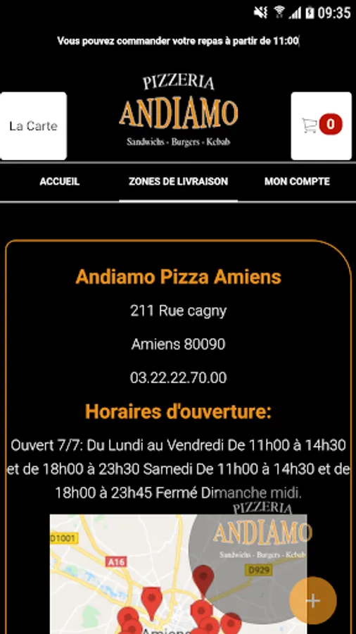 Andiamo Pizza Amiens Android app allows you to order online or over the phone through your app. You can view our map and choose your products.