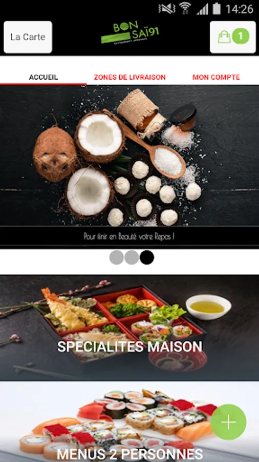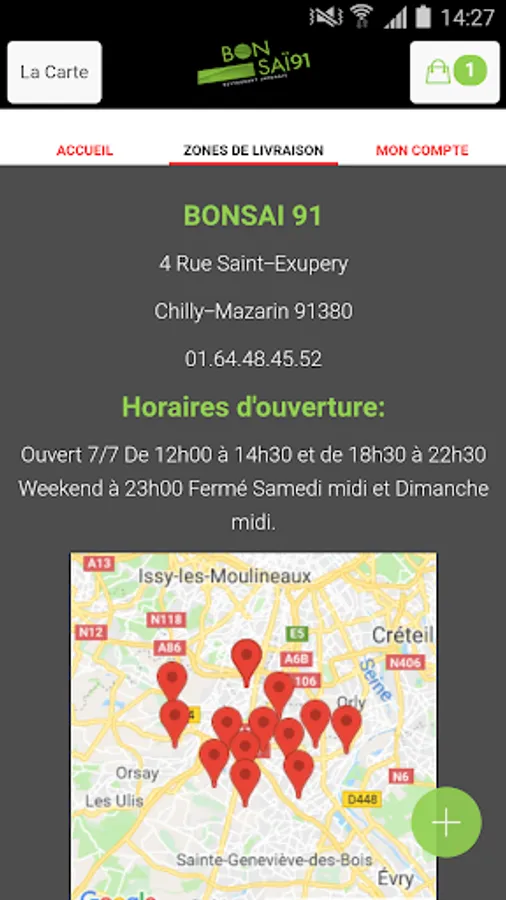 The Android application BONSAI 91 allows you to order online or by phone through your application. You can view our map and choose your products.