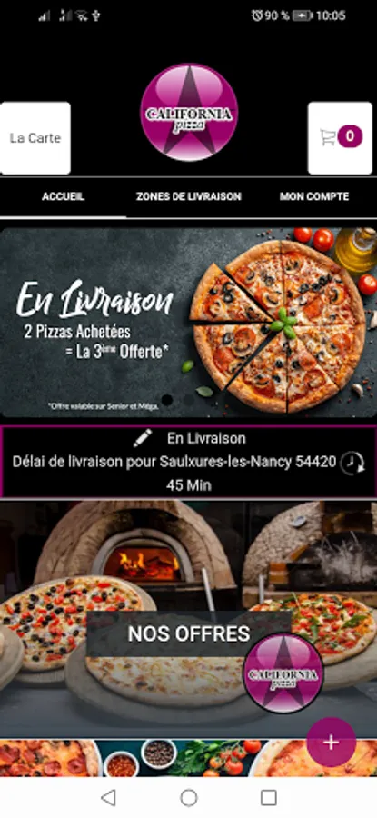 The California Pizza Android app allows you to order online or over the phone through your app. You can consult our menu and choose your products.