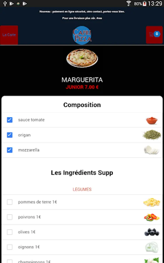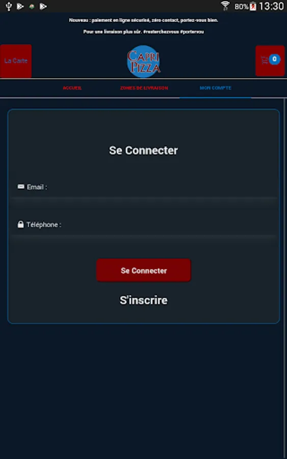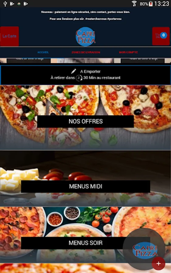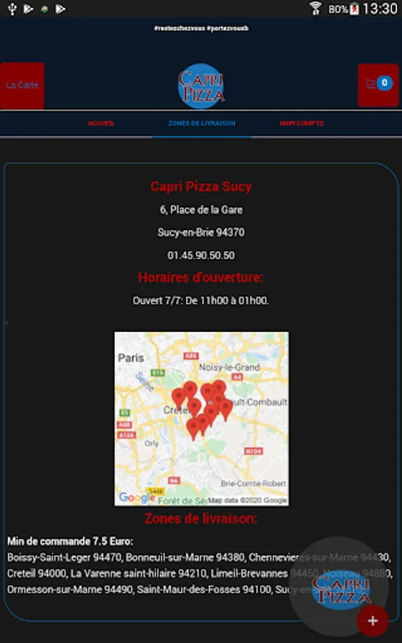 The Capri Pizza Sucy Android app allows you to order online or by phone through your app. You can consult our menu and choose your products.