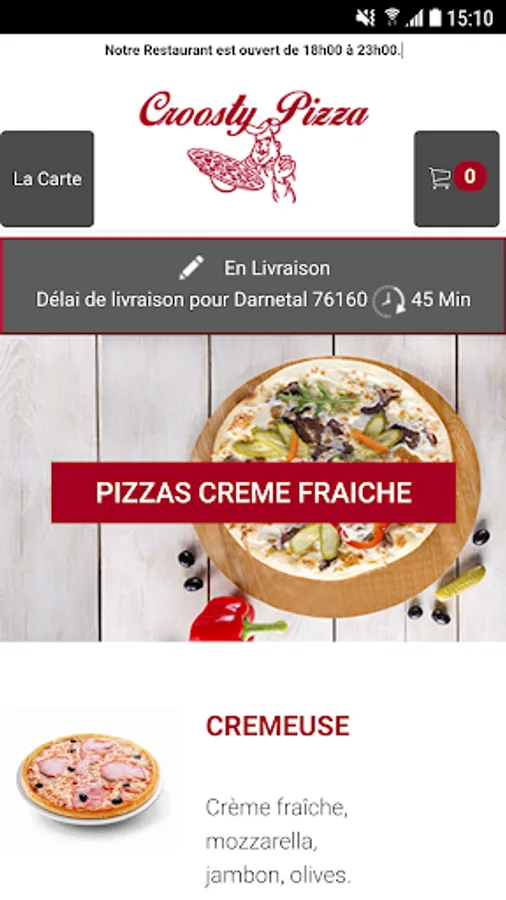 The Croosty Pizza Android app lets you order online or over the phone through your app. You can consult our menu and choose your products.