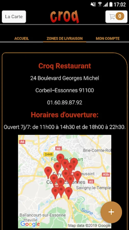 The Croq Restaurant Android app allows you to order online or over the phone through your app. You can view our map and choose your products.