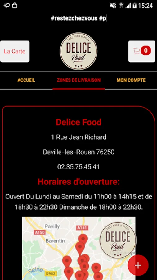 The Delice Food Android app lets you order online or by phone through your application. You can consult our map and select your products.