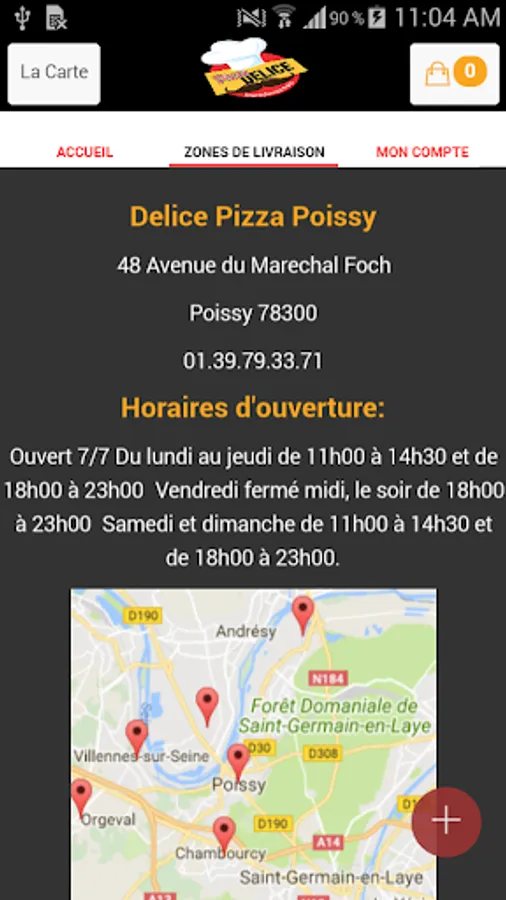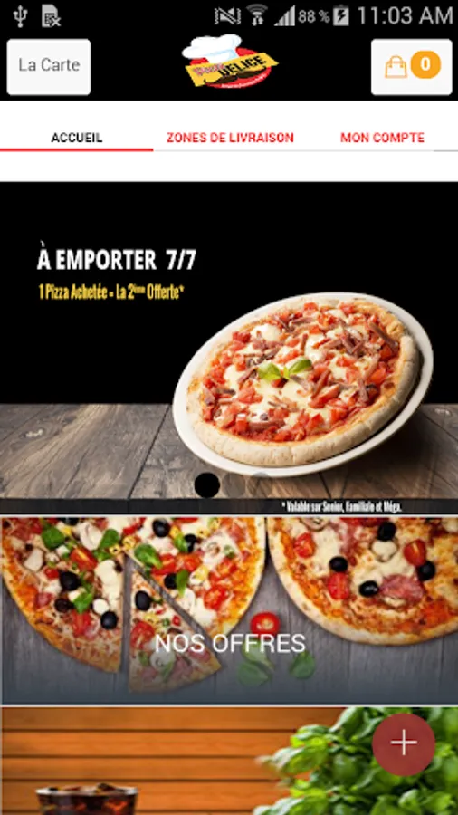 The Delice Pizza Android app lets you order online or by phone through your application. You can consult our map and select your products.
