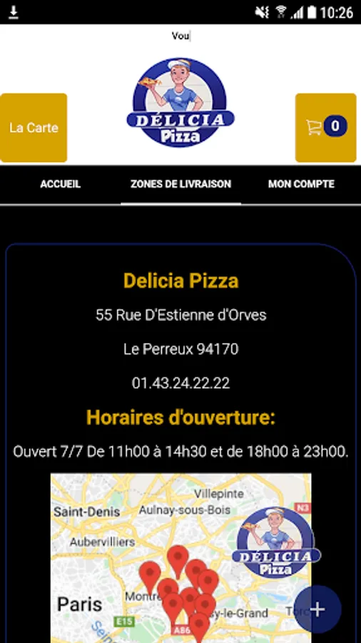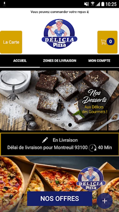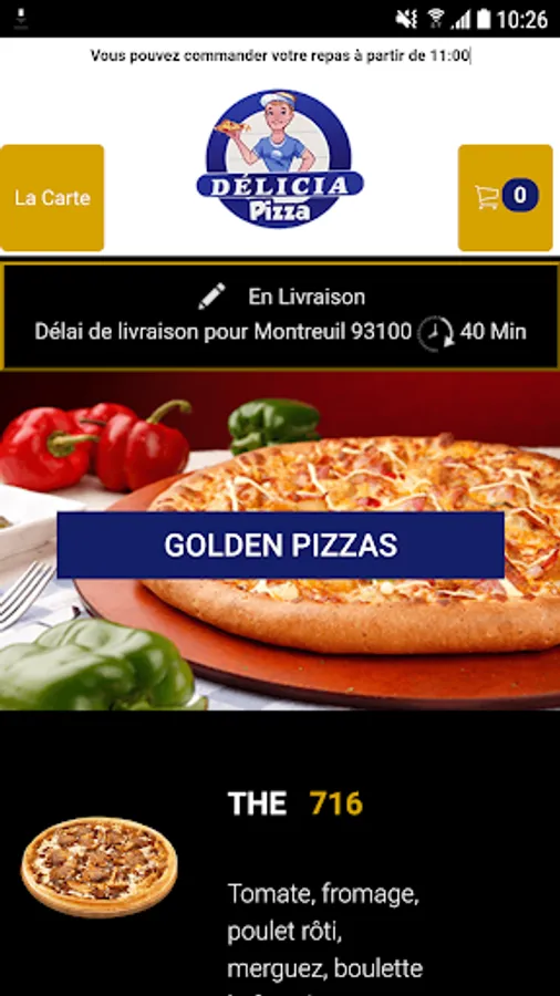 The Delicia Pizza Android app lets you order online or over the phone through your app. You can consult our menu and choose your products.