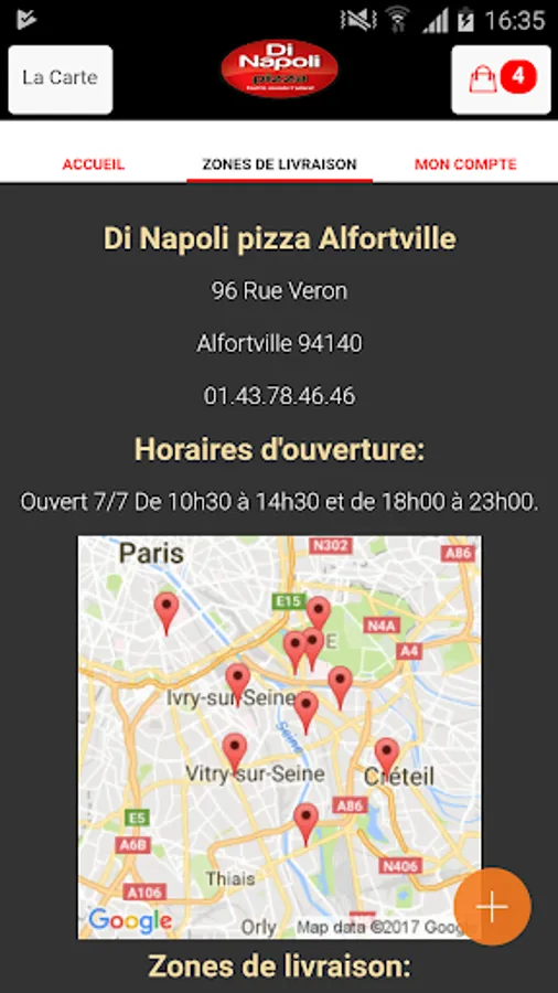 The Android Di Napoli pizza Alfortville app lets you order online or by phone through your application. You can consult our map and select your products.