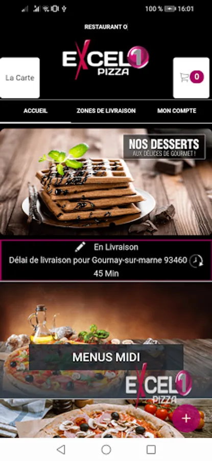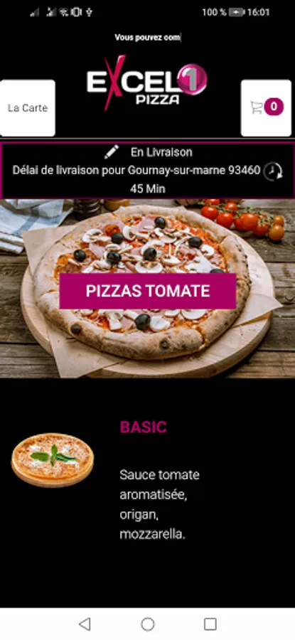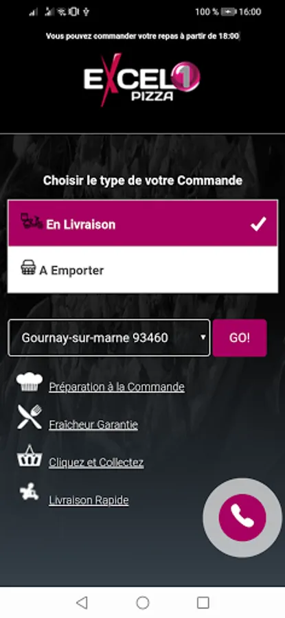 The Excel One Pizza Android app allows you to order online or by phone through your app. You can consult our menu and choose your products.