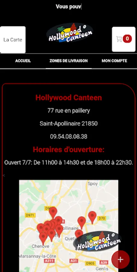 The Holywood Canteen Android app allows you to order online or by phone through your app. You can consult our menu and choose your products.