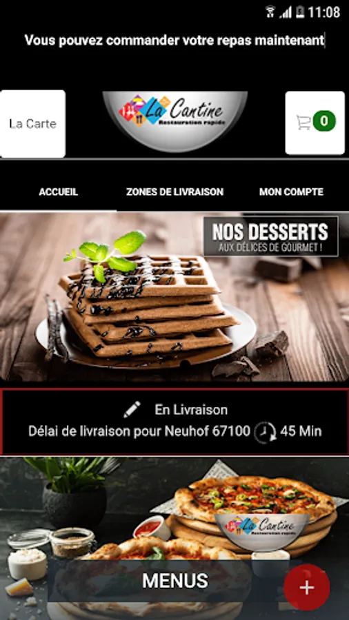 The Android application La Cantine 67 allows you to order online or by phone via your application. You can consult our menu and choose your products.