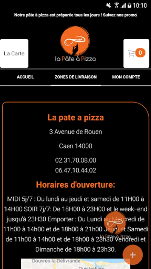 The Android app La pate a pizza allows you to order online or by phone through your app. You can consult our menu and choose your products.