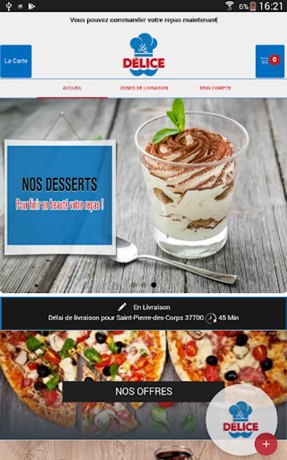 The Le Délice Android app allows you to order online or by phone through your app. You can consult our menu and choose your products.