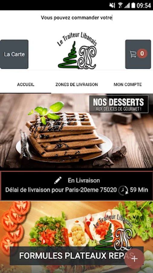 The Android application of Le Traiteur Libanais allows you to order online or by phone through your application. You can consult our menu and choose your products.