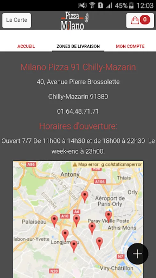The application Milano Pizza 91 Chilly-Mazarin, you can order online or by phone via your application. You can consult our map and choose your products.