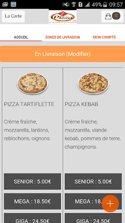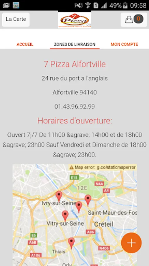 Android Application 7 Pizza Alfortville allows you to order online or by phone via your application. You can consult our map and choose your products.