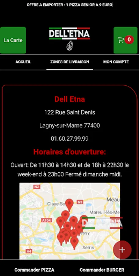 The Dell Etna Android app allows you to order online or by phone through your app. You can consult our menu and choose your products.