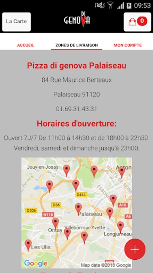 The Pizza di genova Palaiseau Android application allows you to order online or by phone via your application. You can consult our menu and choose your products.