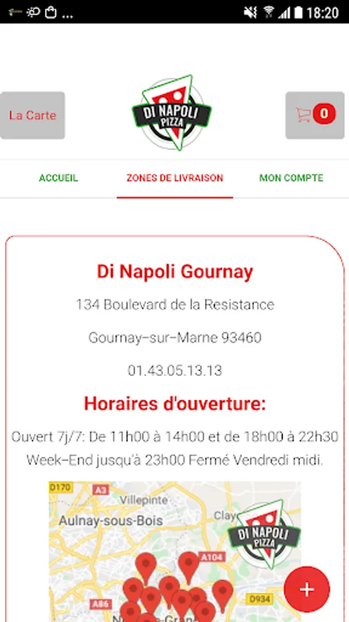 The Android Di Napoli Gournay application allows you to order online or by phone through your application. You can consult our menu and choose your products.