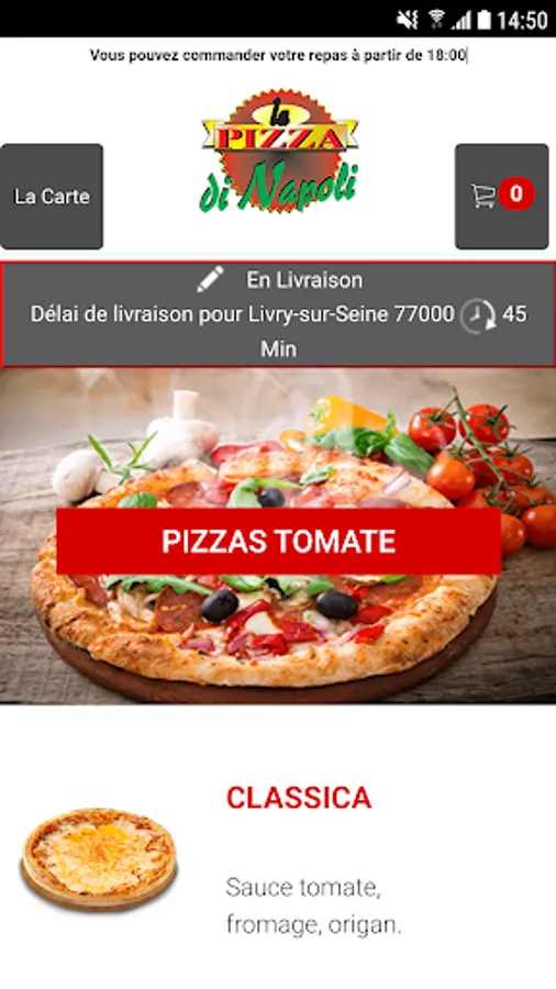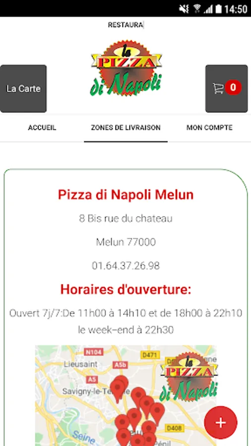 The Pizza di Napoli Melun Android app allows you to order online or by phone through your app. You can consult our menu and choose your products.