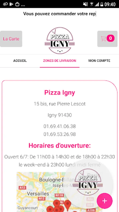 The Android Pizza Igny app allows you to order online or by phone through your app. You can consult our menu and choose your products.