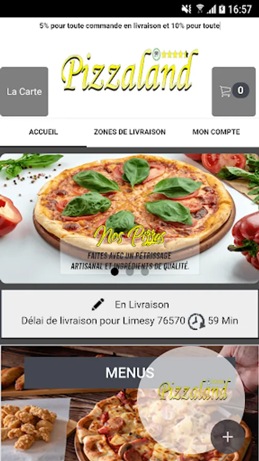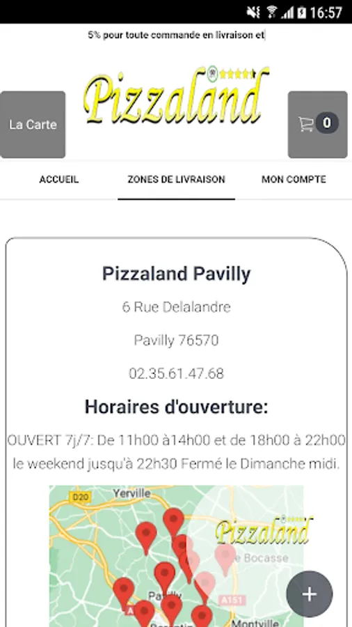The Pizzaland Pavilly Android application allows you to order online or by phone via your application. You can consult our menu and choose your products.