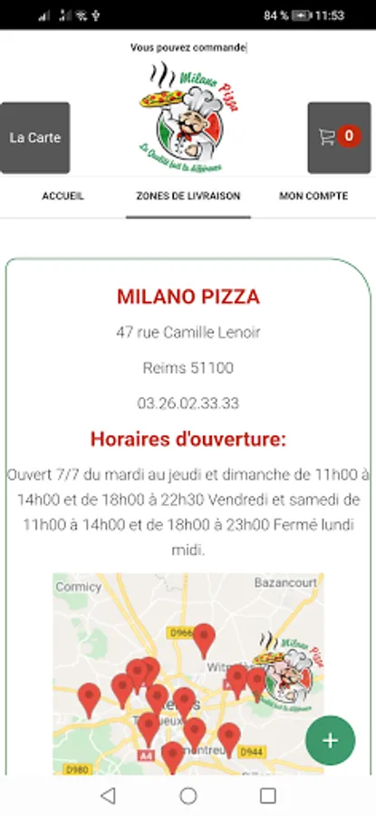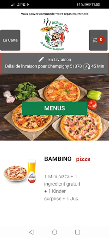 The MILANO PIZZA Android app allows you to order online or by phone through your app. You can consult our menu and choose your products.