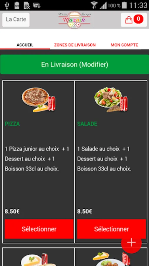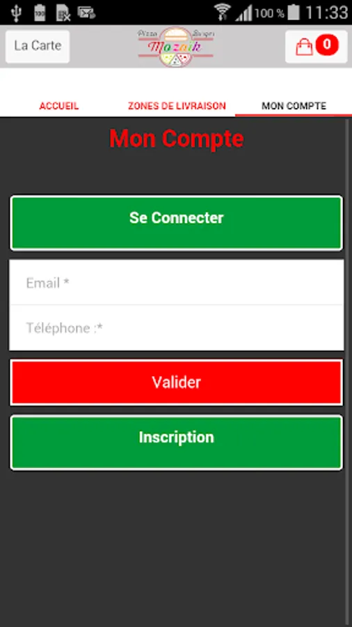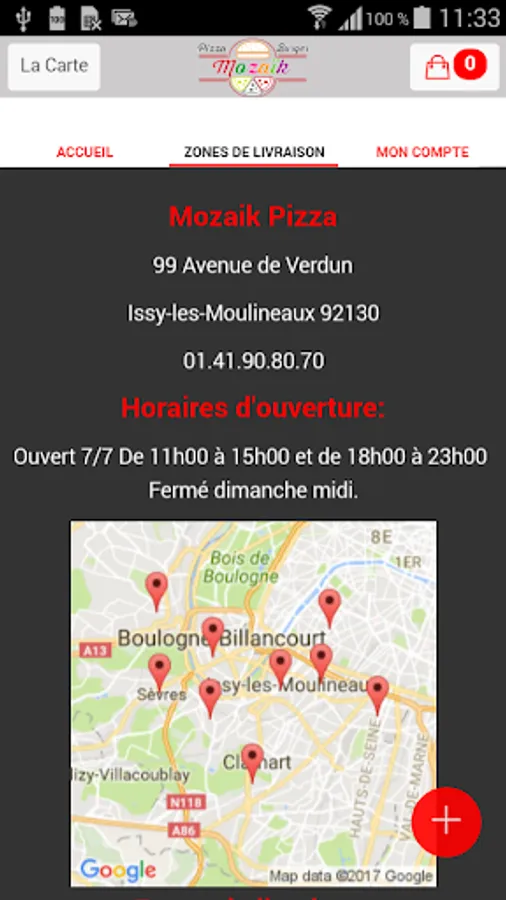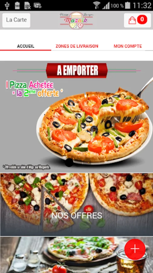 The Mozaik Pizza Android app lets you order online or by phone via your application. You can consult our map and choose your products.