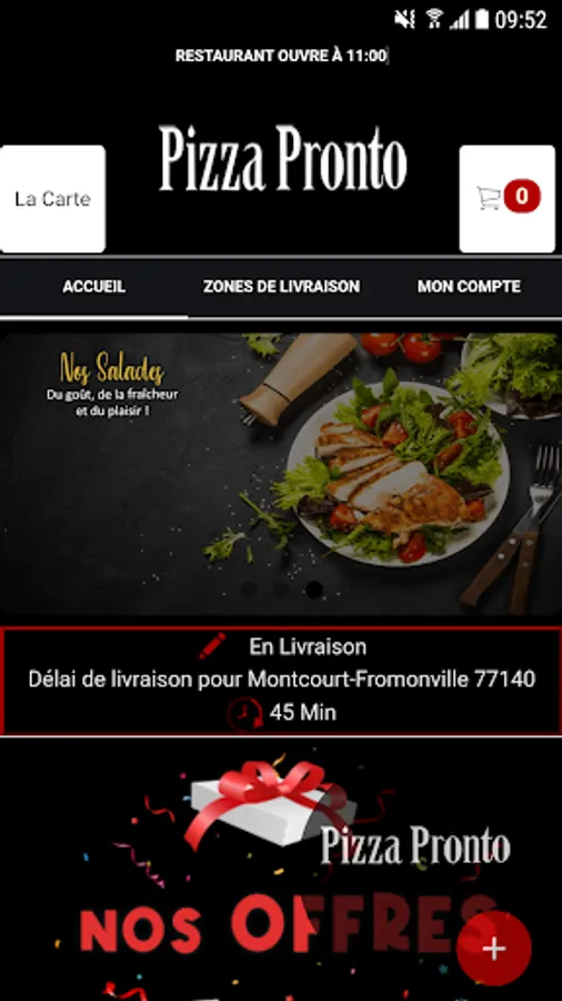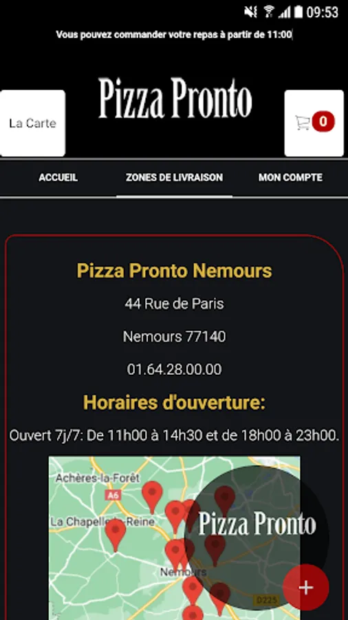 The Android Pizza Pronto Nemours application allows you to order online or by phone via your application. You can consult our menu and choose your products.