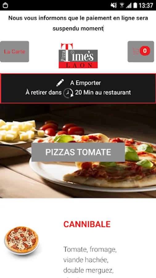 The Android Pizza Times Laon app allows you to order online or over the phone through your app. You can view our map and choose your products.